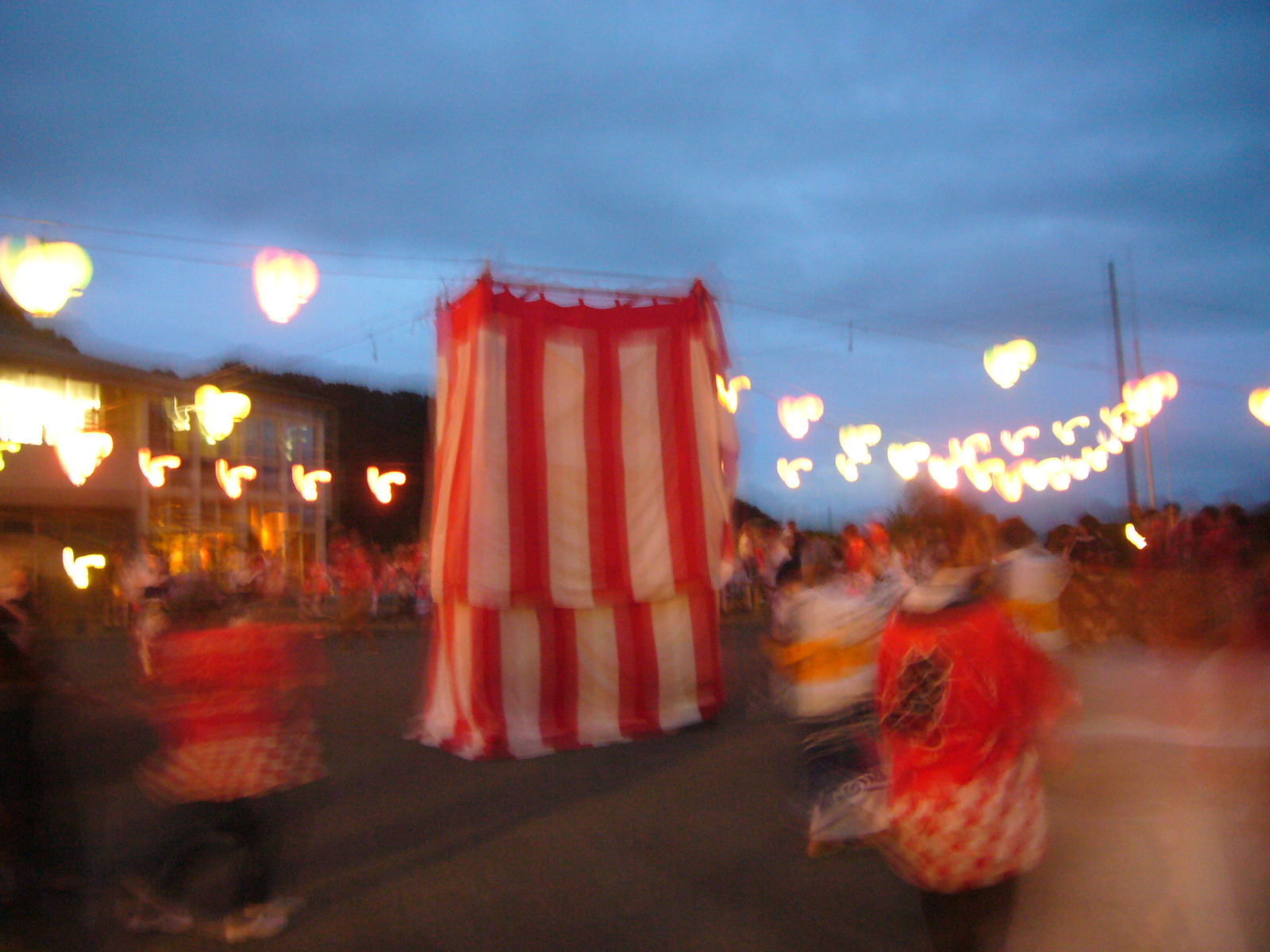 力強く打ち鳴らされた太鼓に合わせて、職員も混ざり、ヤグラのまわりを輪になって