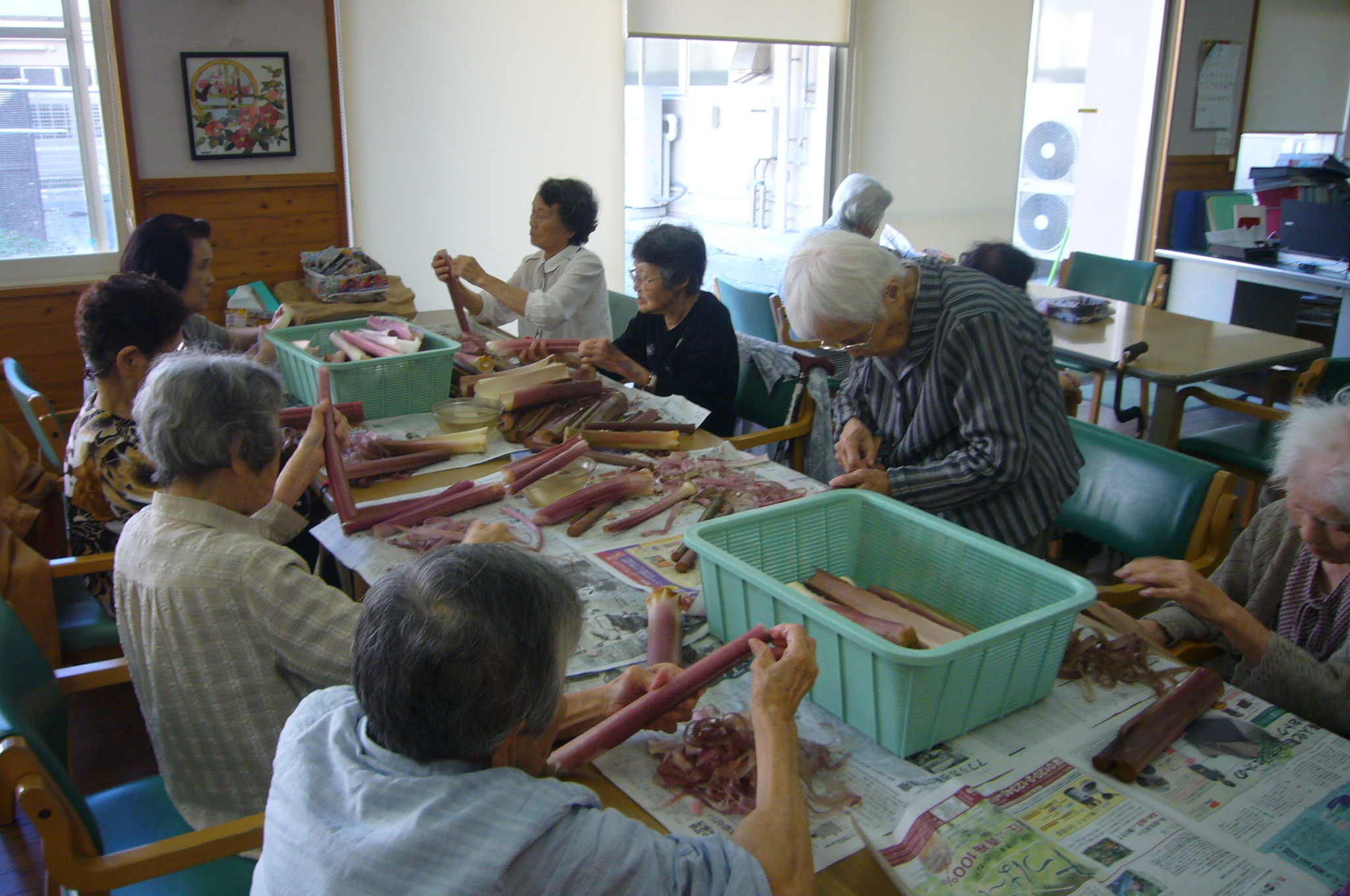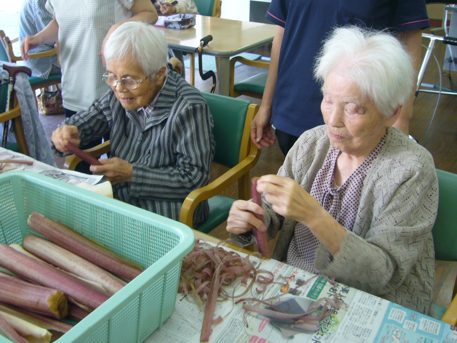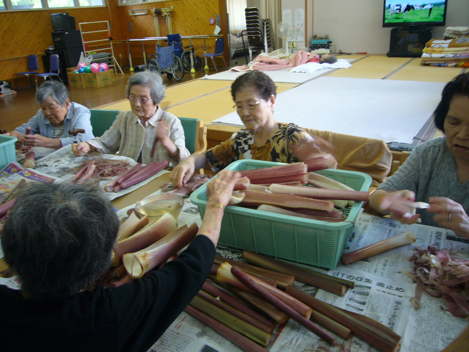 今日は皆さんにズイキの皮むきを手伝っていただきました。