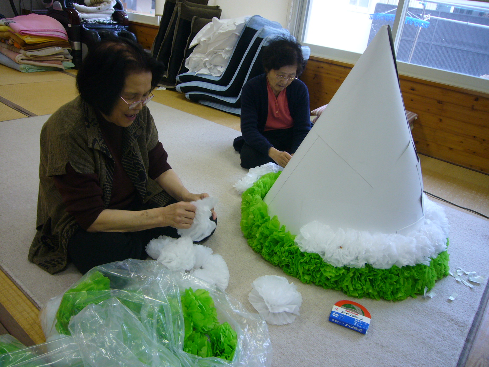 土台となるツリー本体は、お花紙で作った花を1つ1つ丁寧に