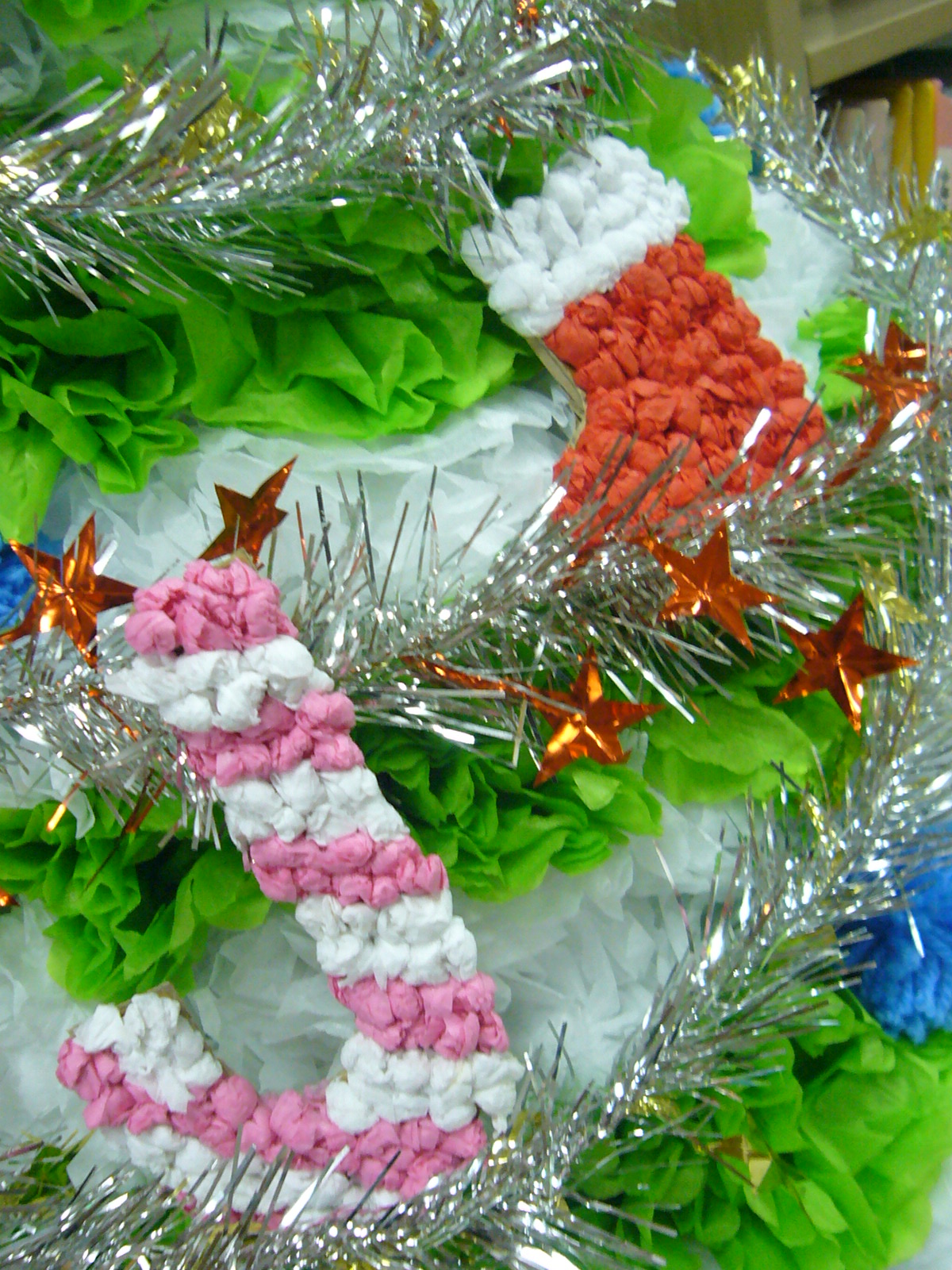 貼り付けて頂き、靴下等のオーナメントもお花紙を丸めたものを