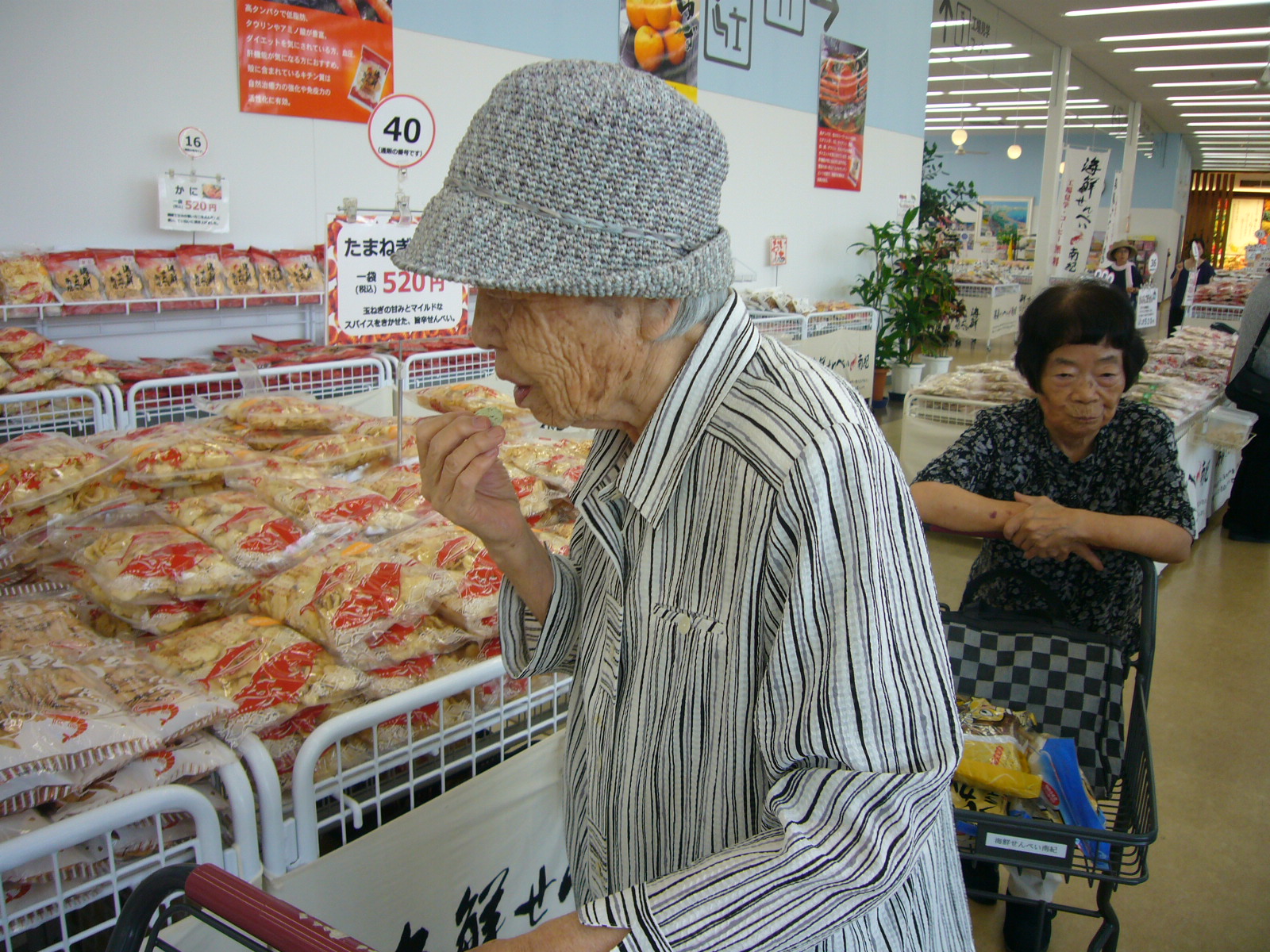 千畳敷や円月島を見て、海鮮せんべい屋さんで