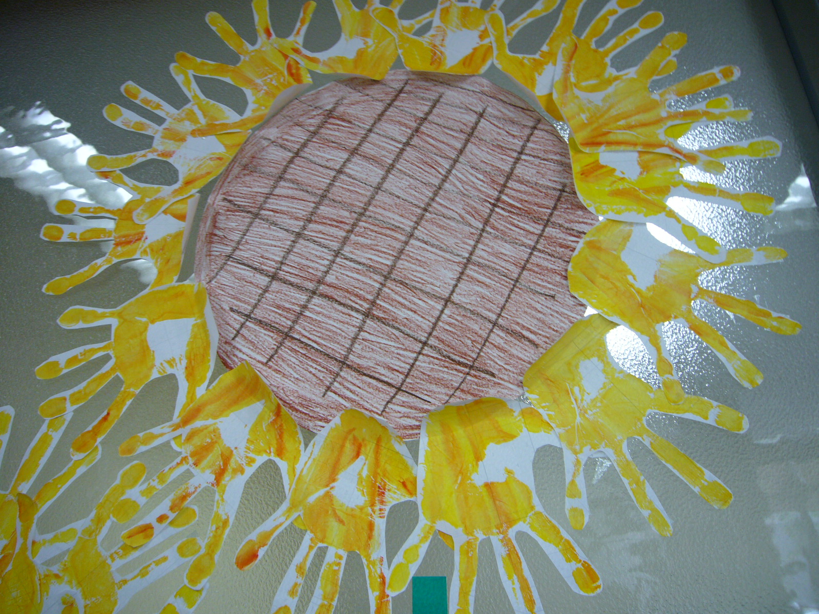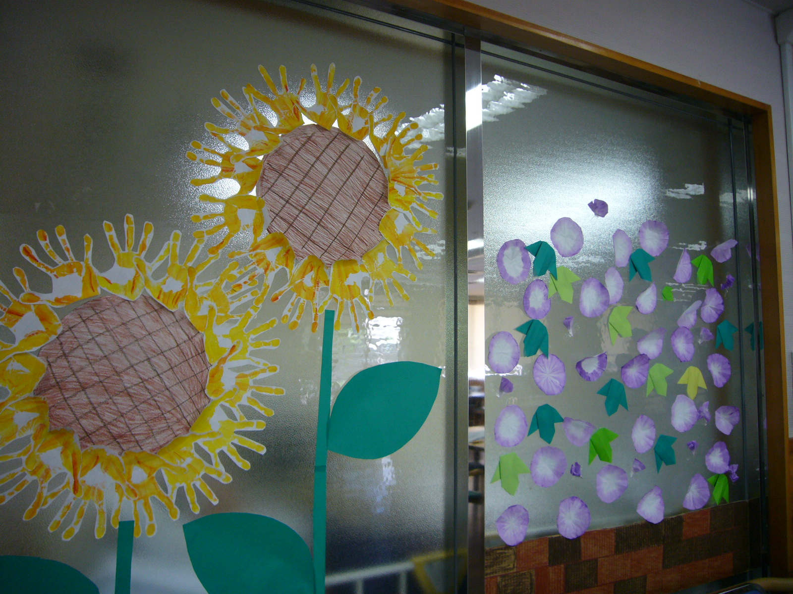 ヒマワリは皆さんの手形で作成しています。