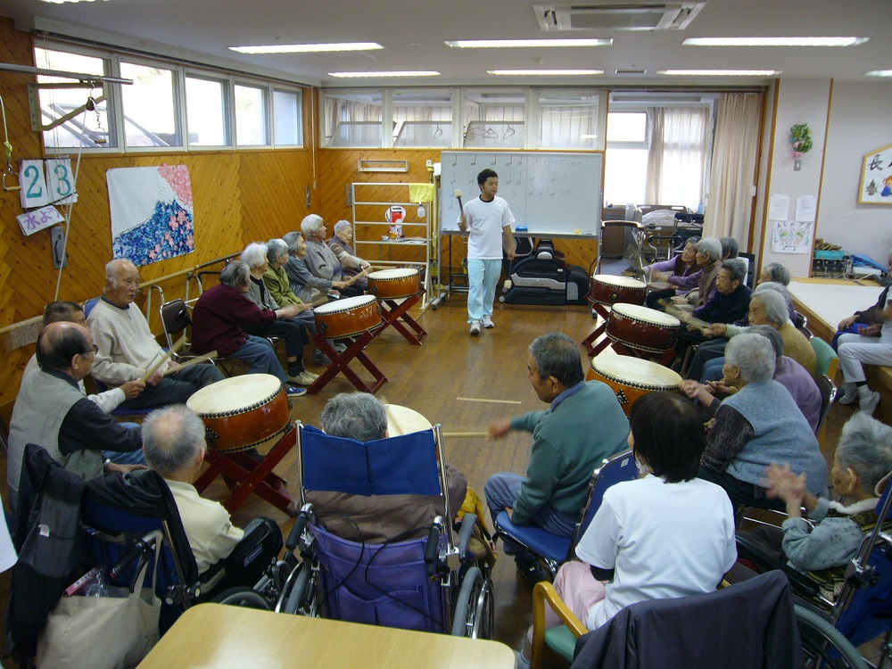 佐竹介護員による和太鼓演奏では