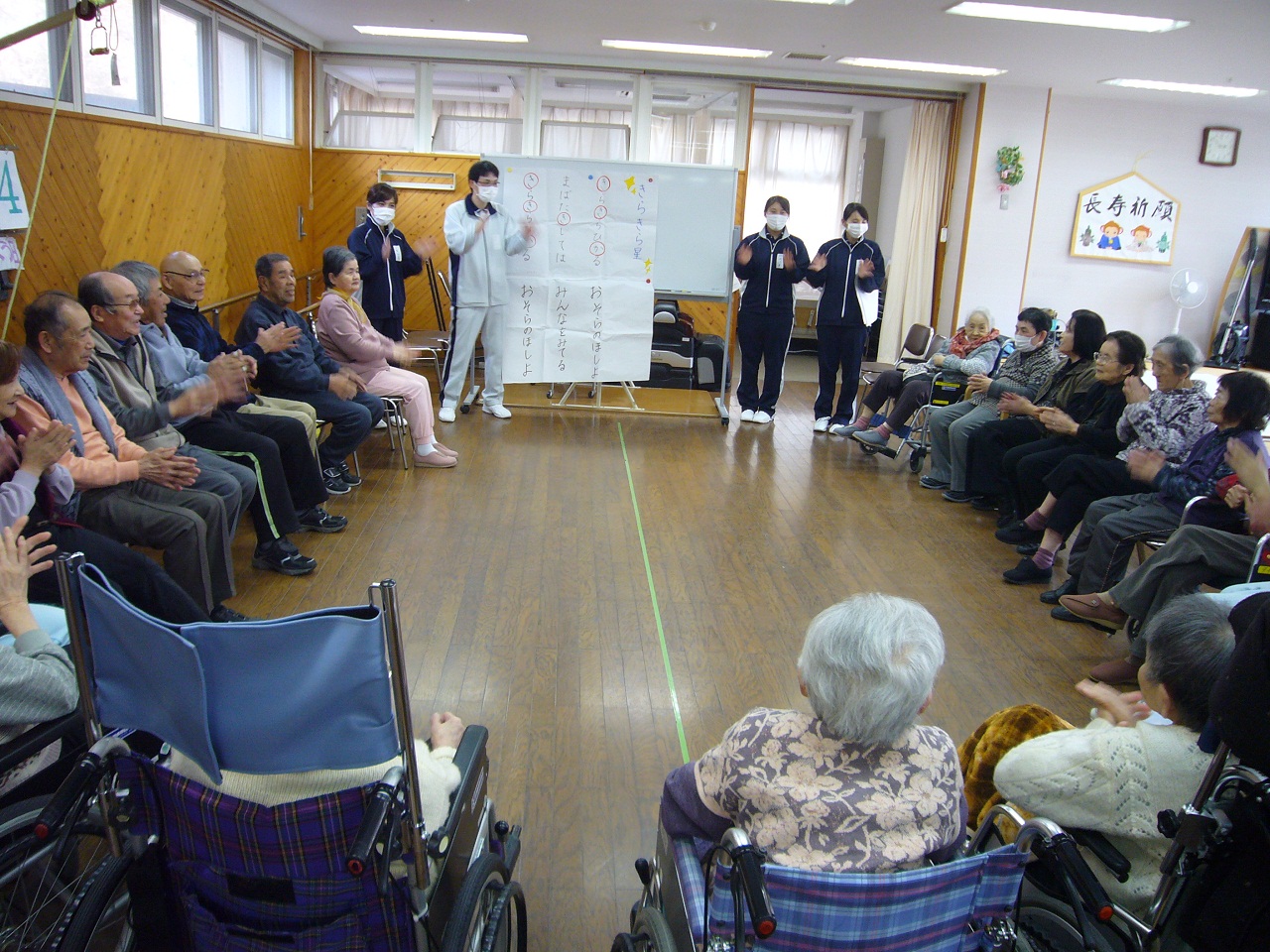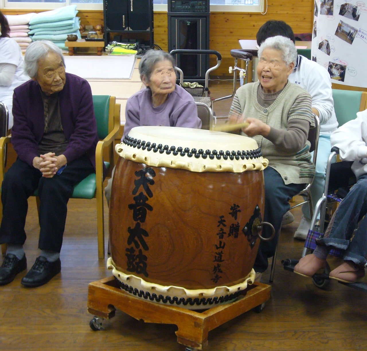 天音太鼓保存会に所属する美浜デイサービスの職員と