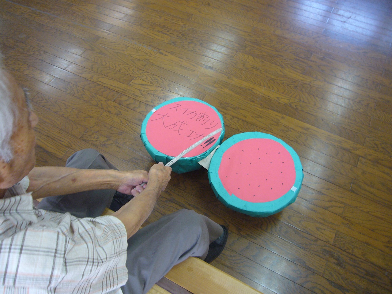 スイカ割りは本物ではなくお手製のスイカです(^w^)