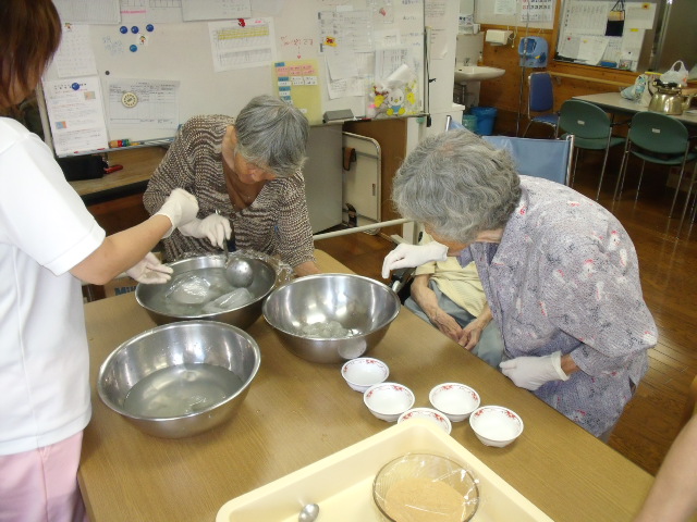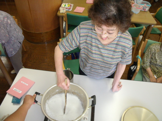 おやつにわらび餅を作りました。みんなで