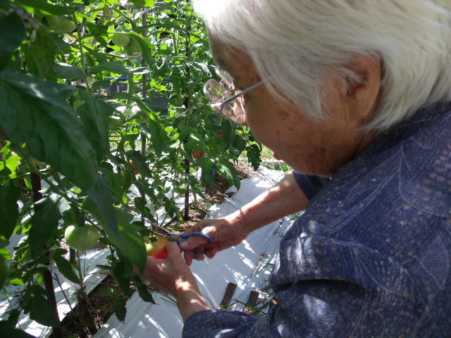 <トマトとナスの収穫>