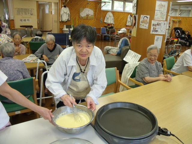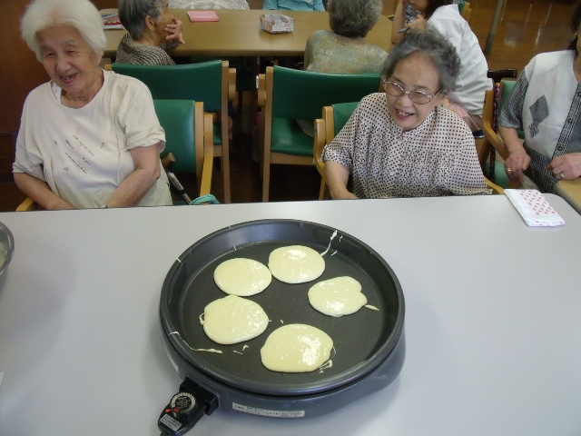 <ホットケーキ作り>