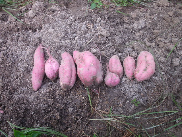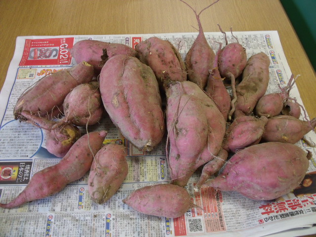 おもしろい色々なさつまいもが採れました。