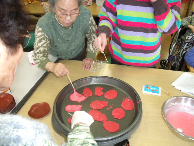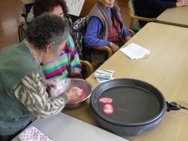 今月のおやつ作りは「焼き包み桜餅」を作りました。