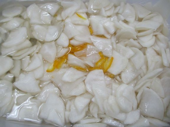 皆さん熟練の腕前で株の葉っぱは漬物に、株の部分は酢