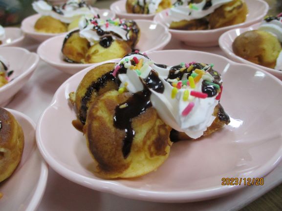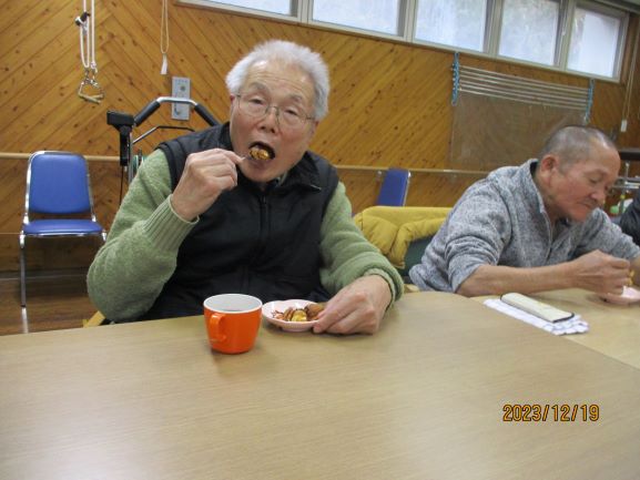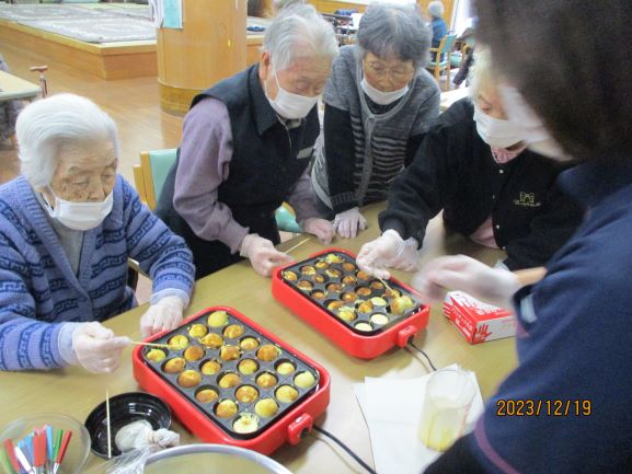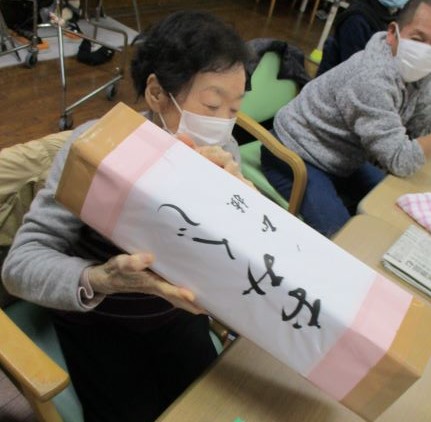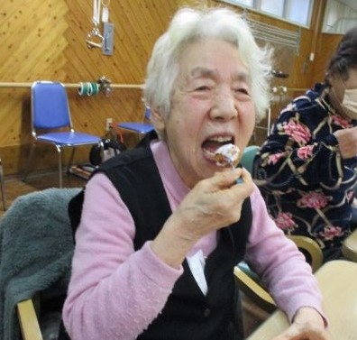 ひっくり返すのに苦戦しながらも楽しくおやつレク