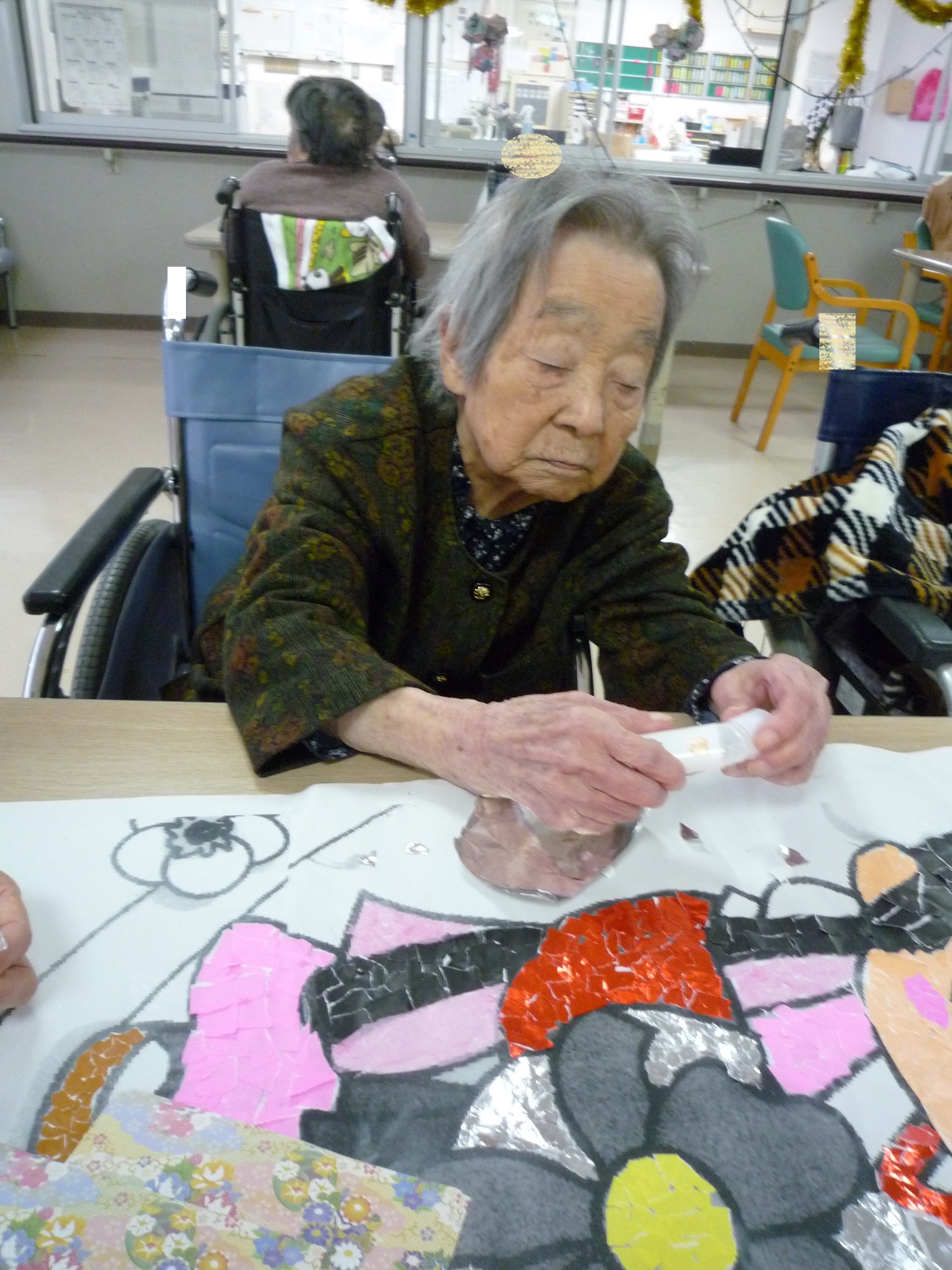 利用者の皆さまで、コツコツお正月飾りを作成中