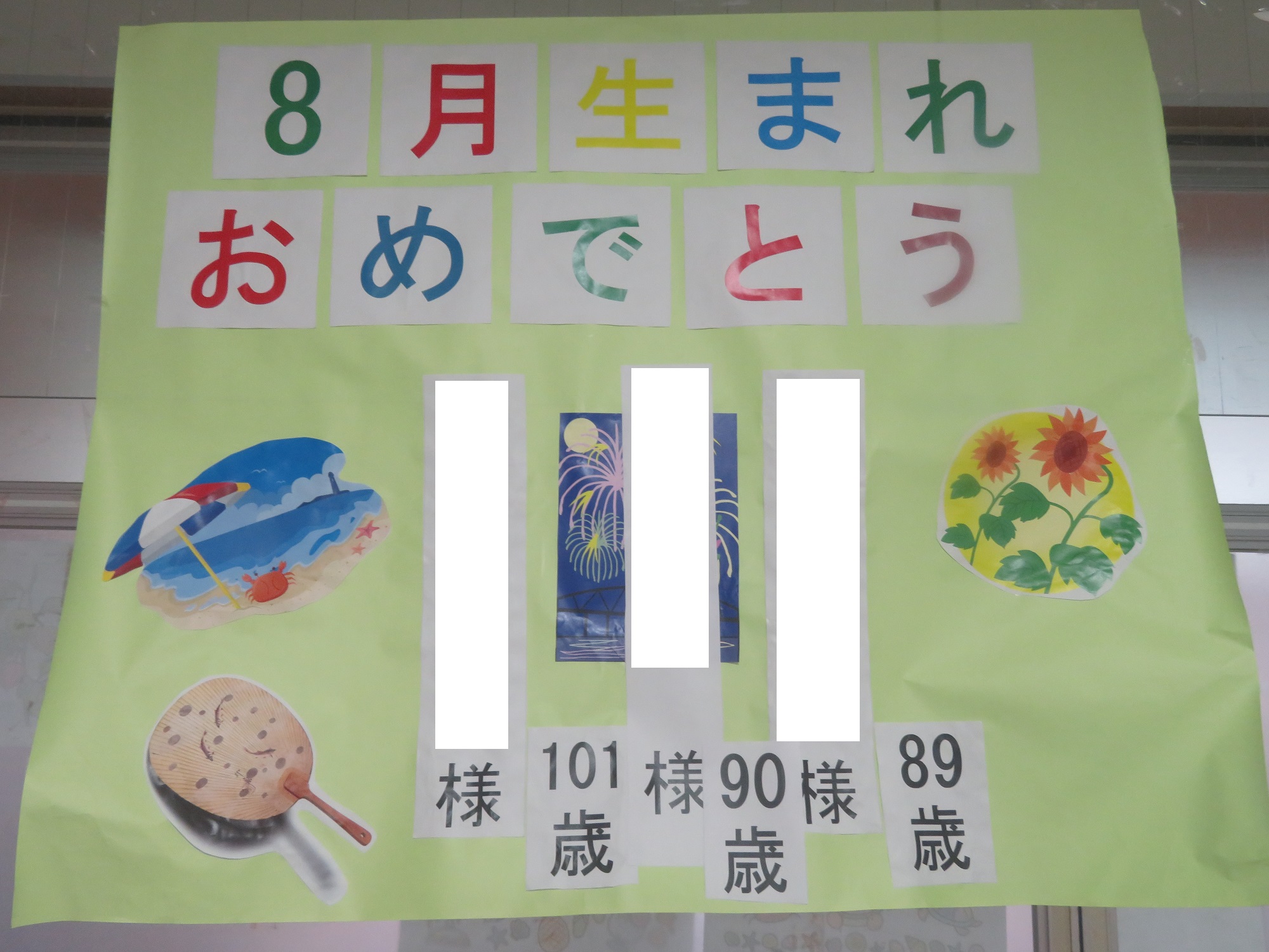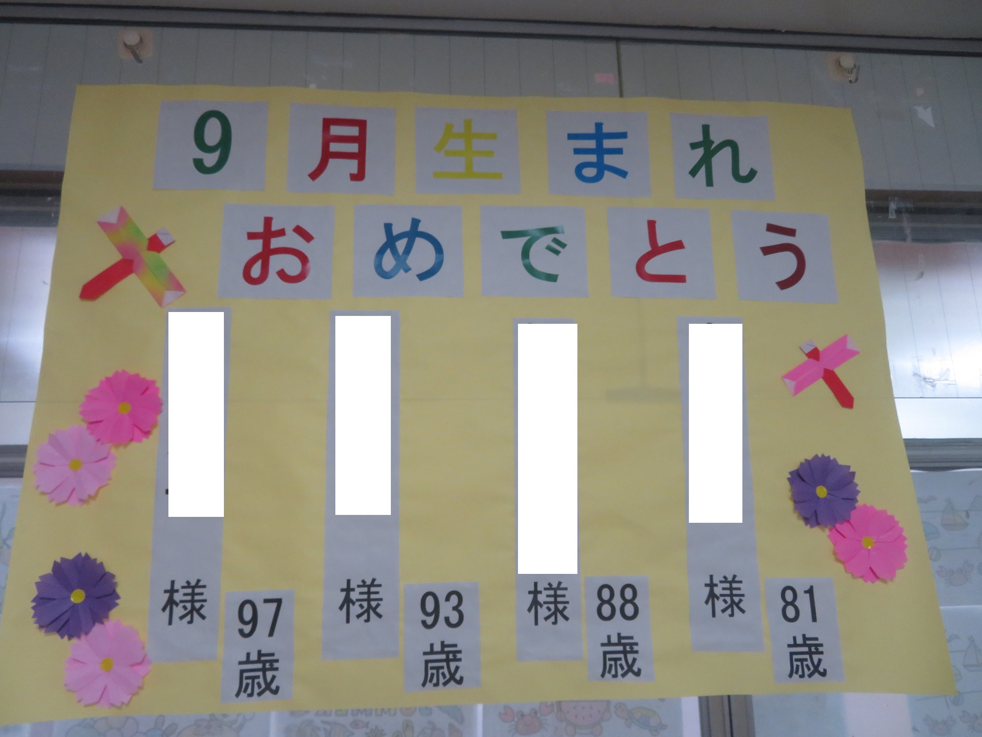 今月は、4名の方が、82歳、87歳、89歳、94歳のお誕生日を迎えられます!