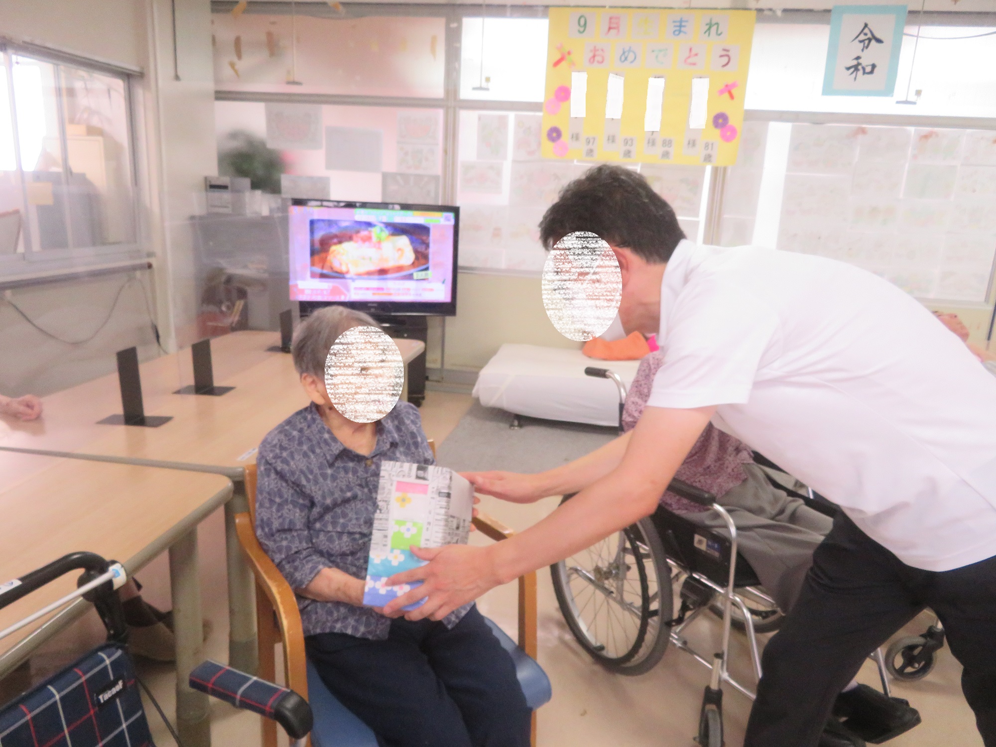 施設長より、誕生日プレゼントを贈呈🎁