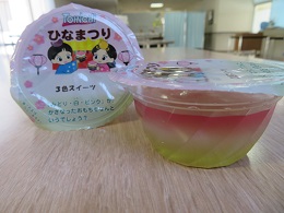 おやつは、ひなまつりの3色ゼリーでした。