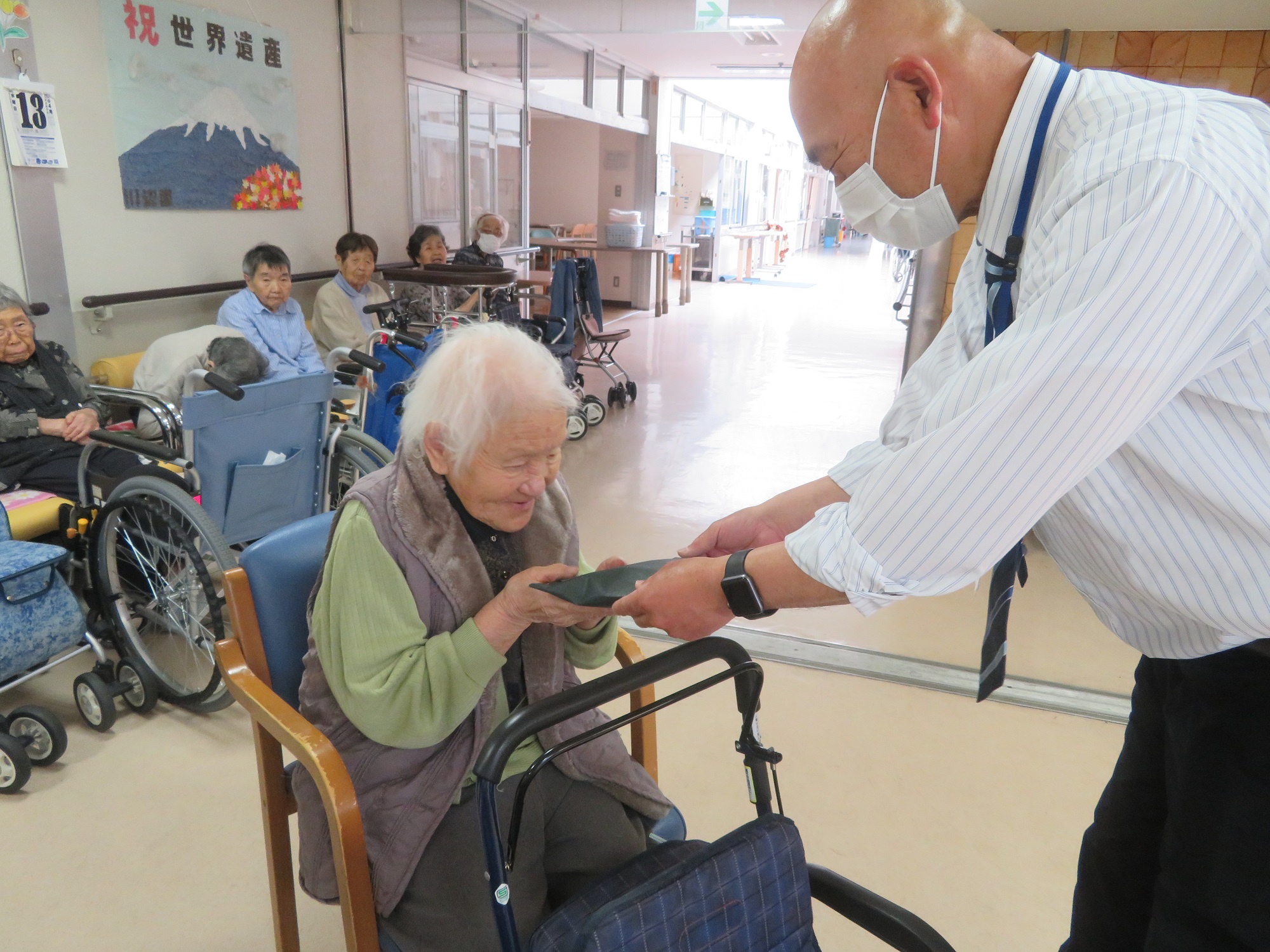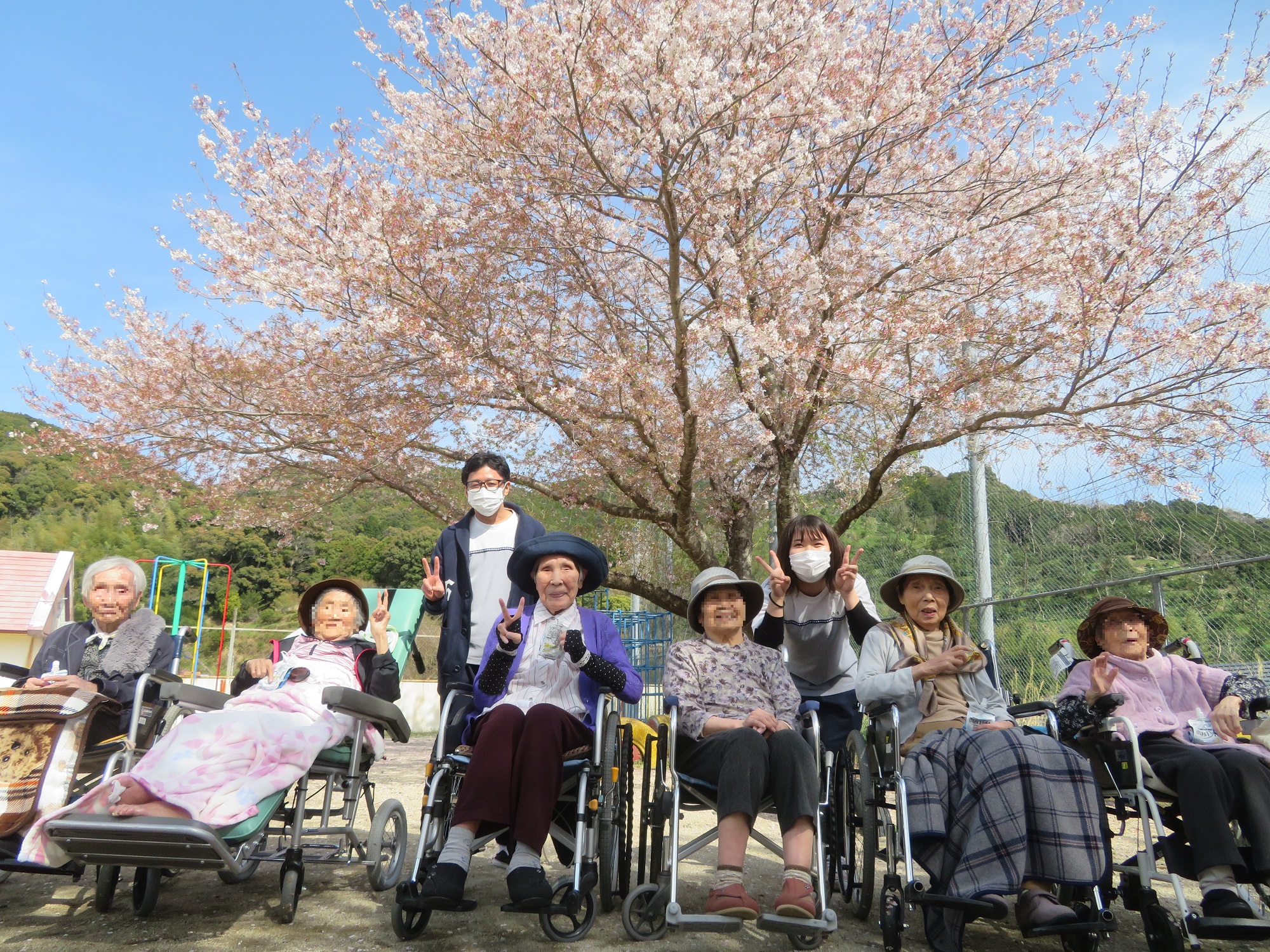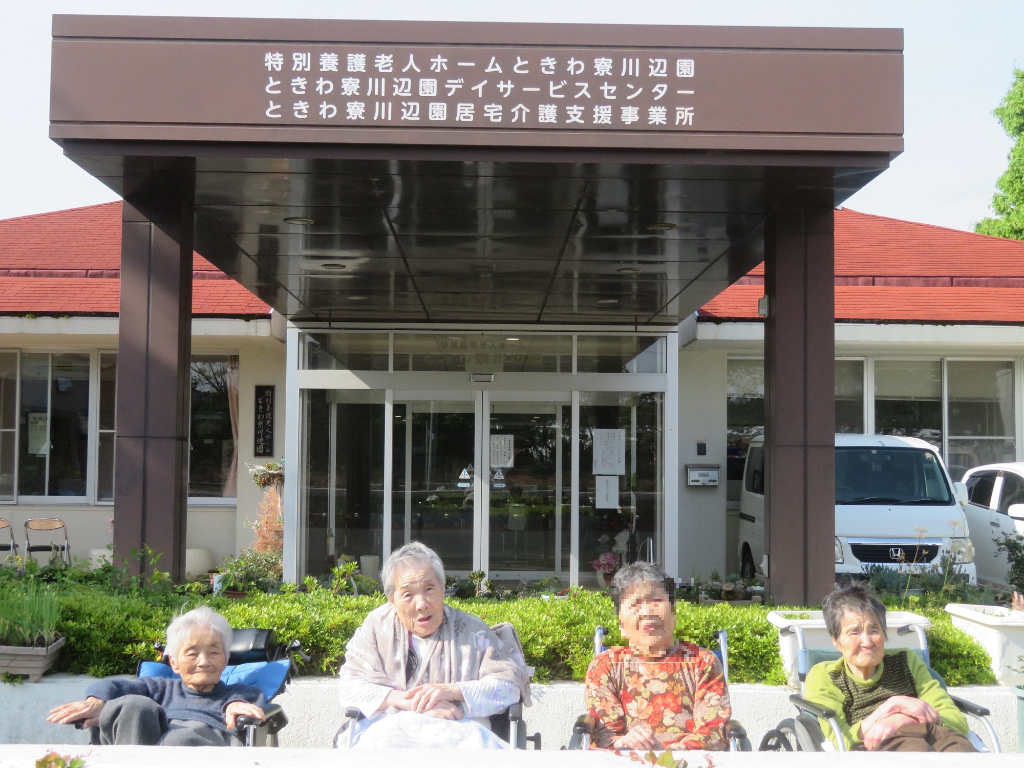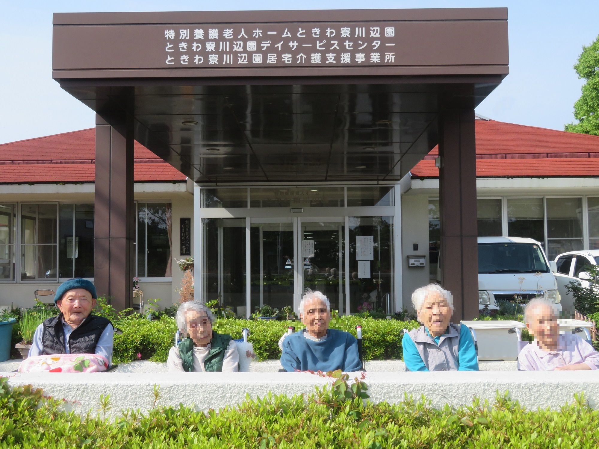 利用者の皆さまと、玄関前で記念撮影をしました