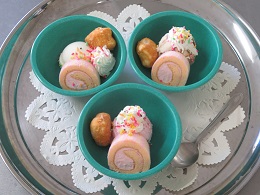 今回は、パフェ風アイスクリームスペシャル 〜ロールケーキを添えて〜 を用意いたしました (^^)