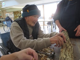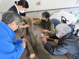 2.穴に椎茸の種を植え、