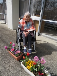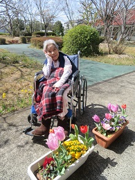 園庭にて(花の力でみんなを笑顔に)
