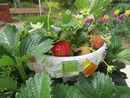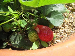 今年は早くに暖かくなったので、露地栽培の苺が色づき始めています。
