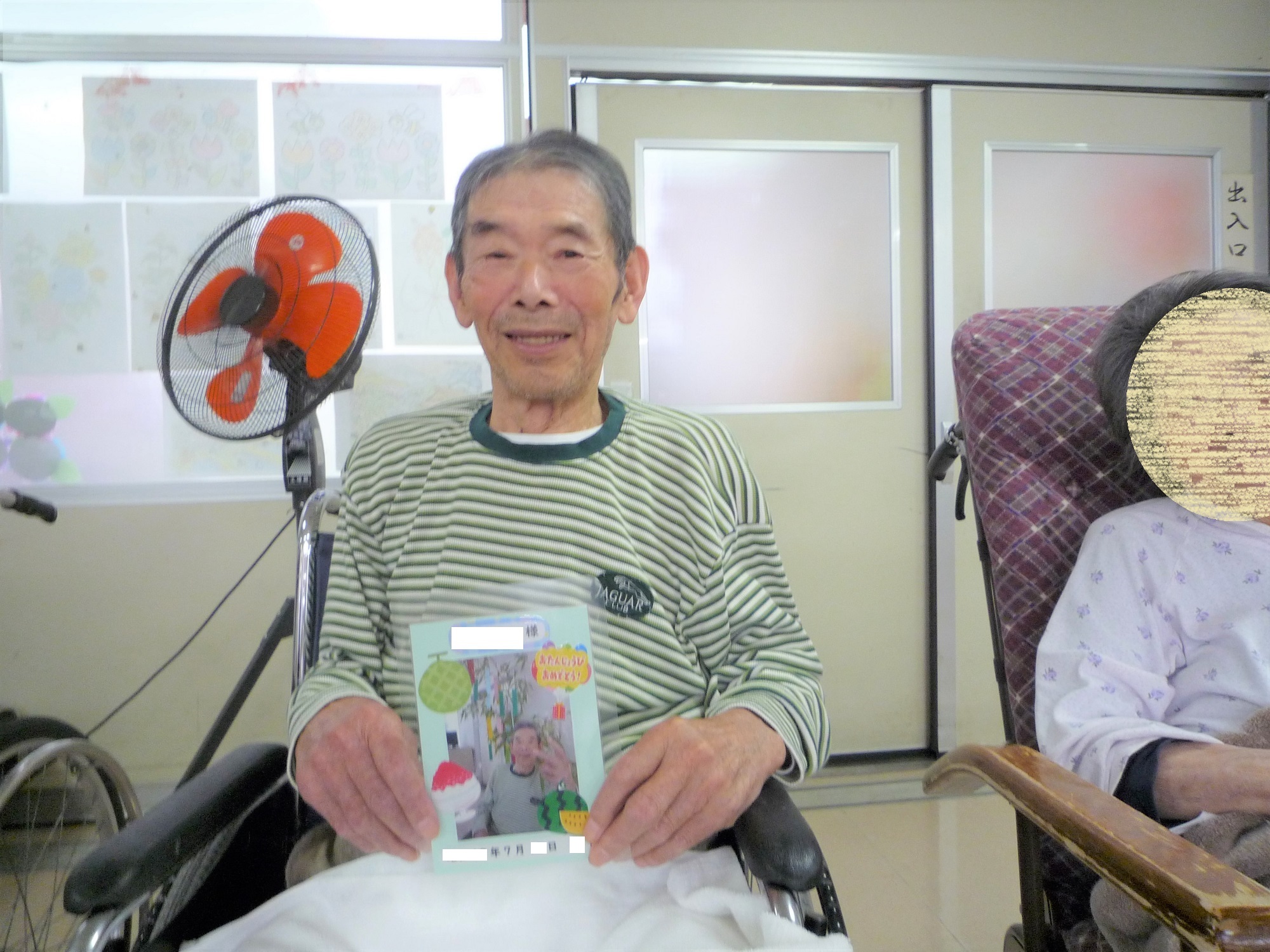 プレゼントのお饅頭をほおばって、満面の笑顔を見せてくださった、利用者さまも( *´艸`)