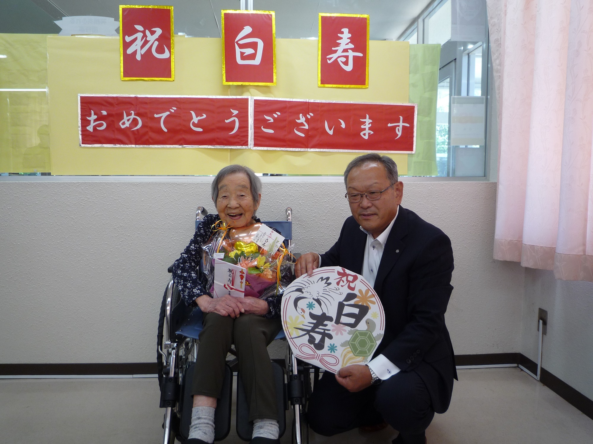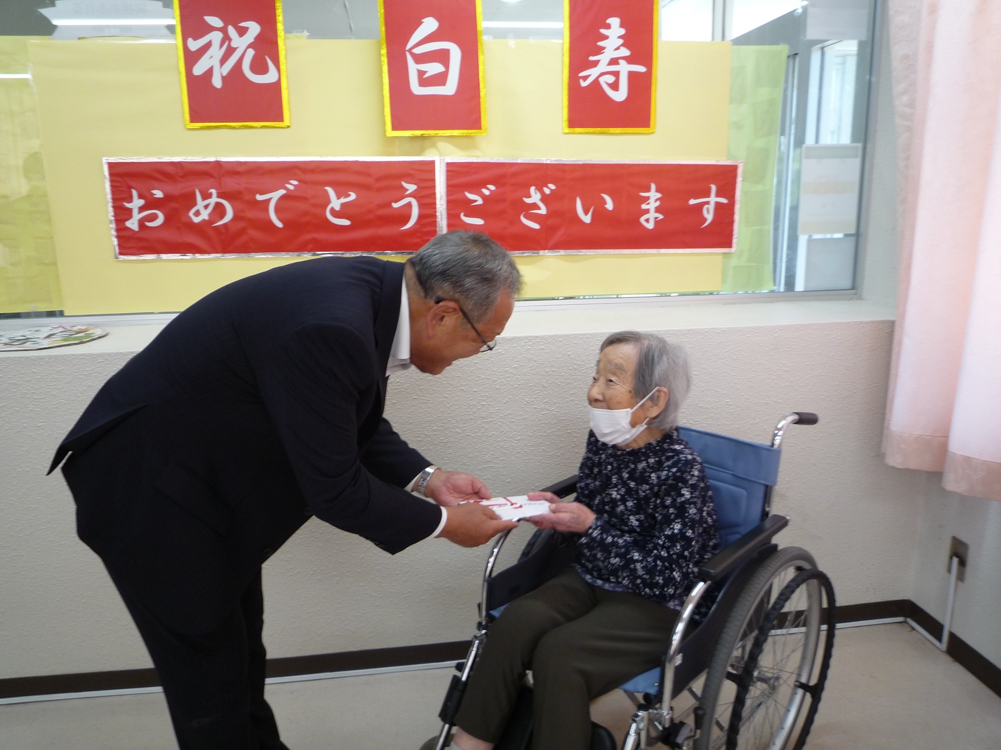 日高川町、久留米町長が、「白寿」を迎えられた利用者さまのお祝いに来てくださいました✨