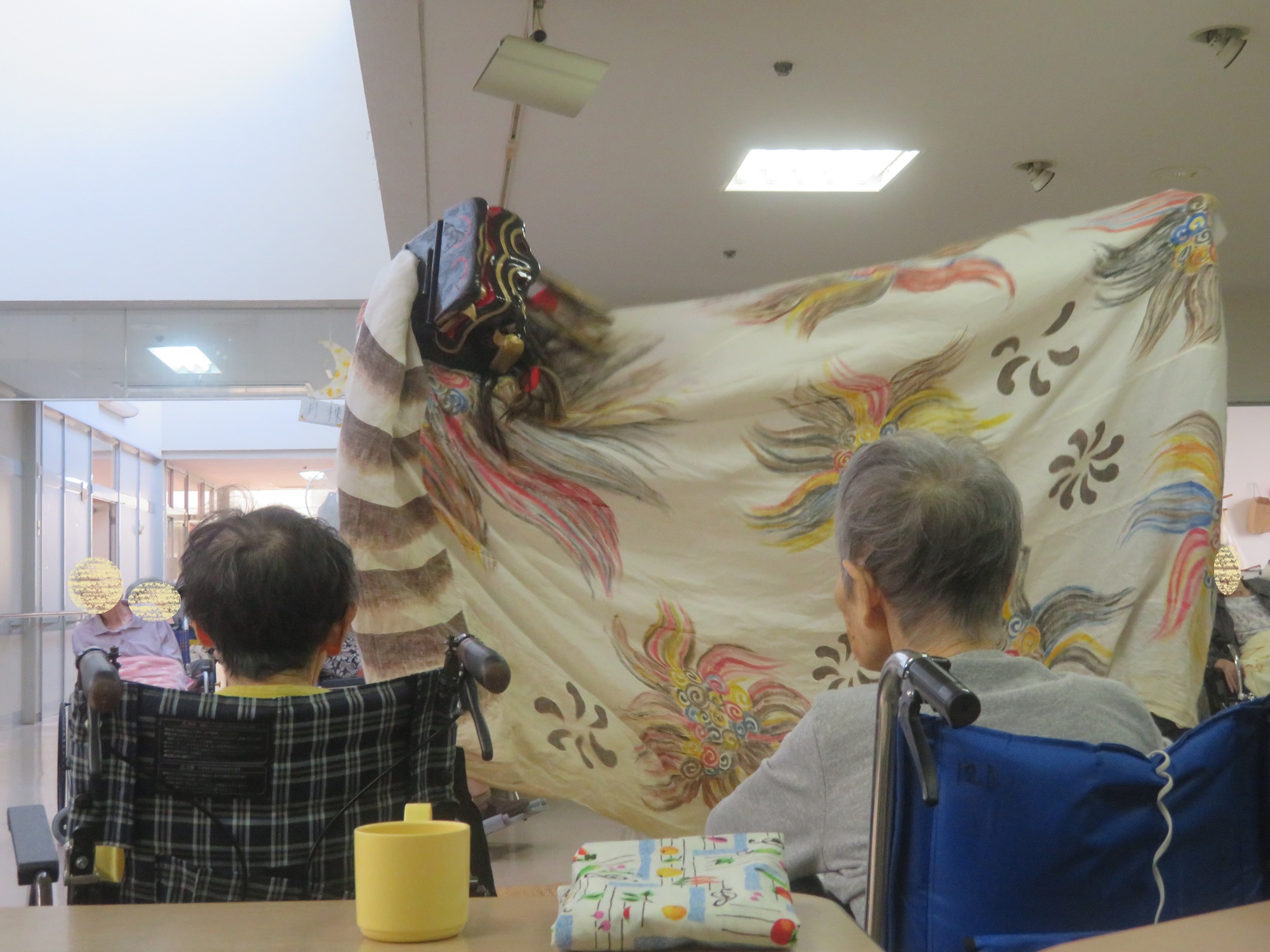 迫力のある獅子舞に、利用者のみなさまも職員も大興奮!