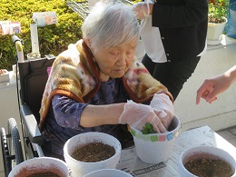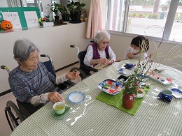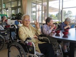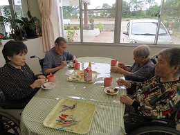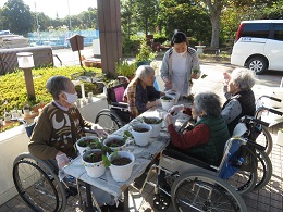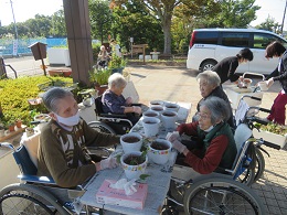 広場でデイの利用者さんと楽しいひと時を過ごして頂きました。