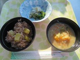 前日紹介した芋を使った3品にデイサービスで作った「お漬物」が