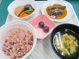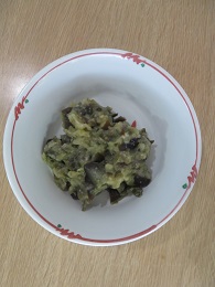 立派な茄子が収穫できたので、酢味噌和えにして提供させていただきました。