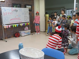 ウォーリーの仮装の射的コーナーは、お子様達の長い行列ができあがり、大好評でした。