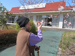 4月に入り、天気の良い日に園庭で桜鑑賞をしました。