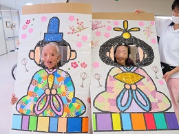 お内裏様とお雛様の顔抜きパネルで記念撮影しました。