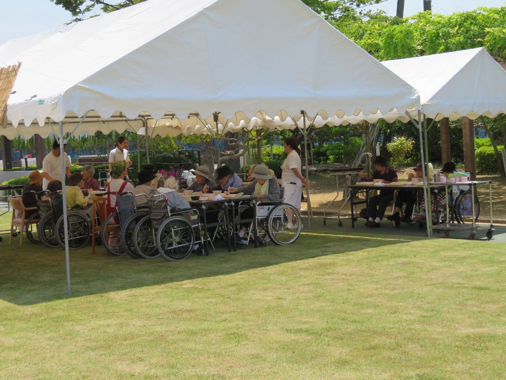 今年度は「園庭にてお食事」と、明日開催する「お茶会」を計画しました。