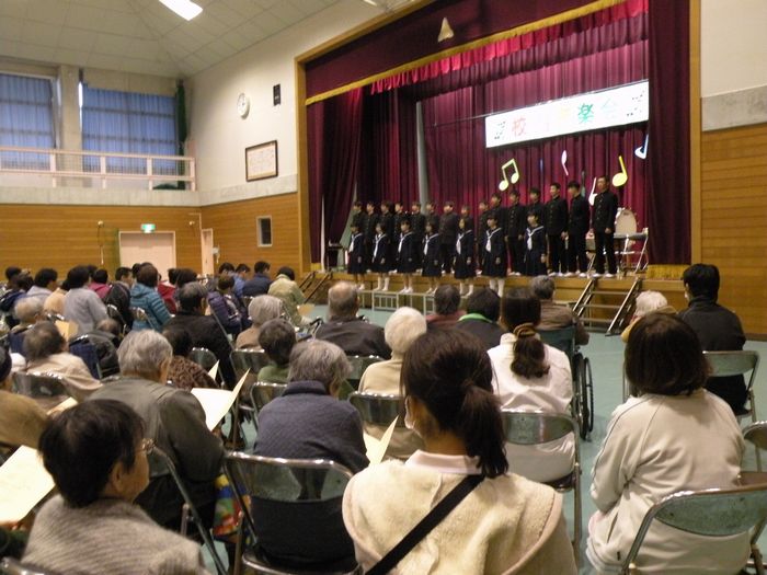 本日、町内の早蘇中学校より音楽会の招待頂き、デイサービス利用者と