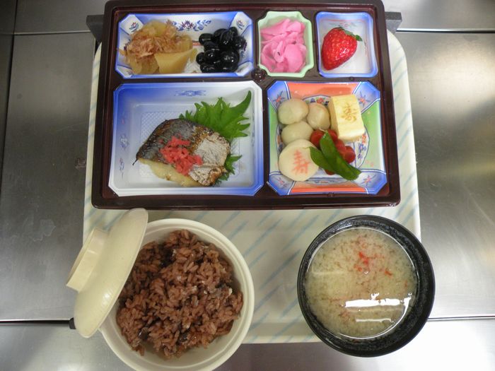 昼食におせち料理を提供しました。午後から利用者の皆さんにホールに