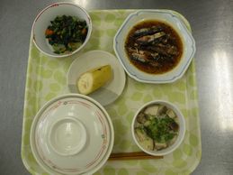 昼食に鰯、夕食にちらし寿司とお多福饅頭を提供しました。