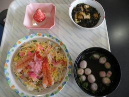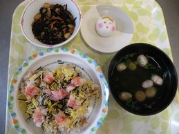 ひな祭りの行事食でちらし寿司を昼食に提供しました。(*^_^*)