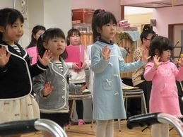小さい子供さんも歌や踊りを披露していただき利用者や入所者の