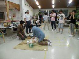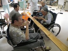 車椅子で移動していただき周囲から「右、左、など」誘導や声援