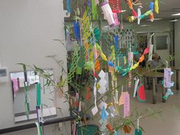 利用者の皆様に短冊を書いていただき願いを込めて御坊市内にある小竹八幡神社へ