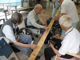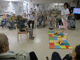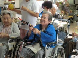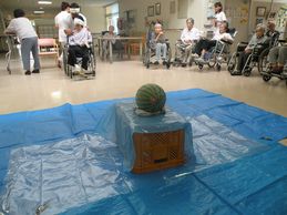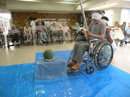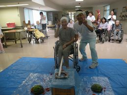 本日、ホールにてスイカ割り大会行いました。利用者の方で