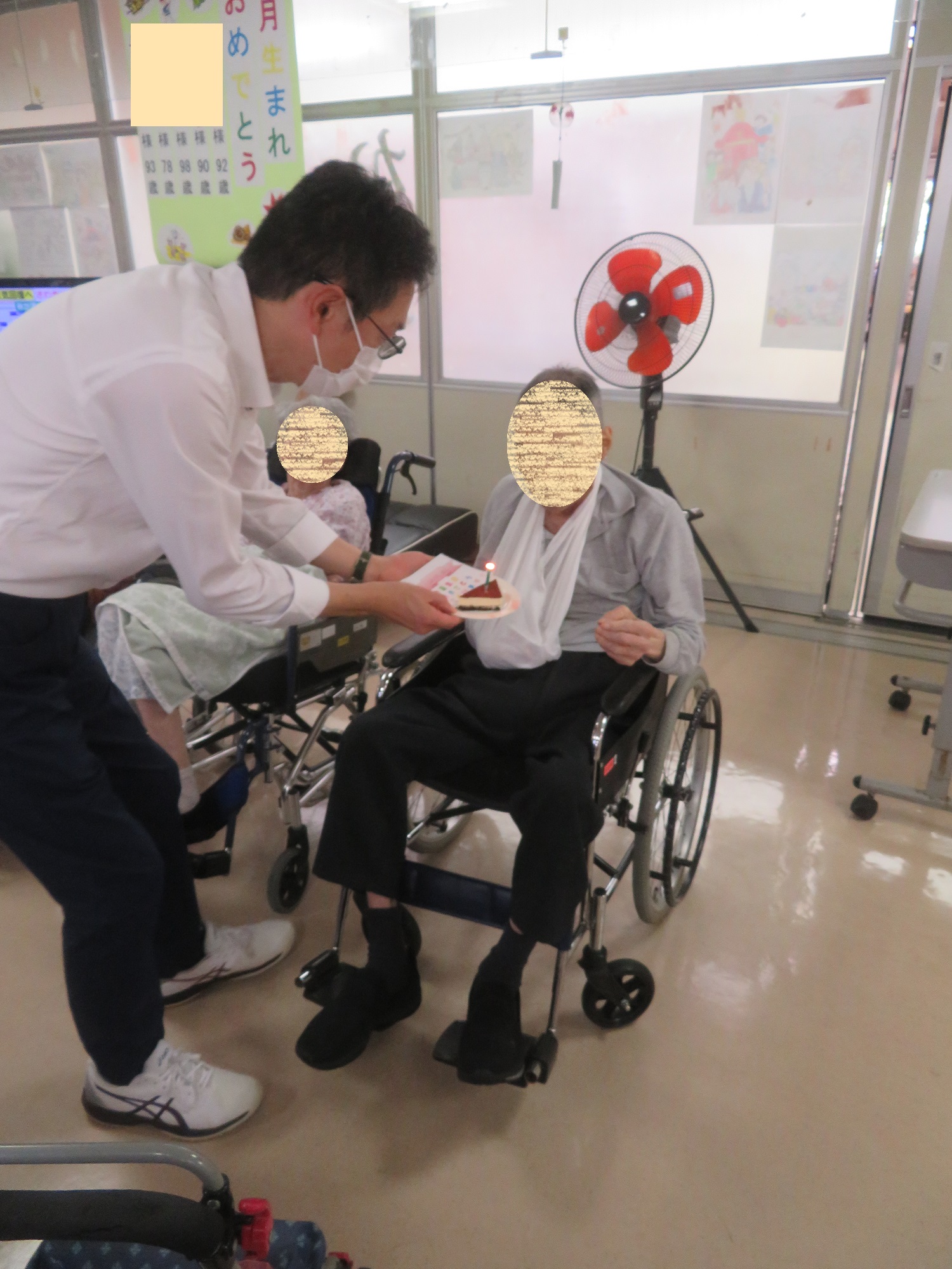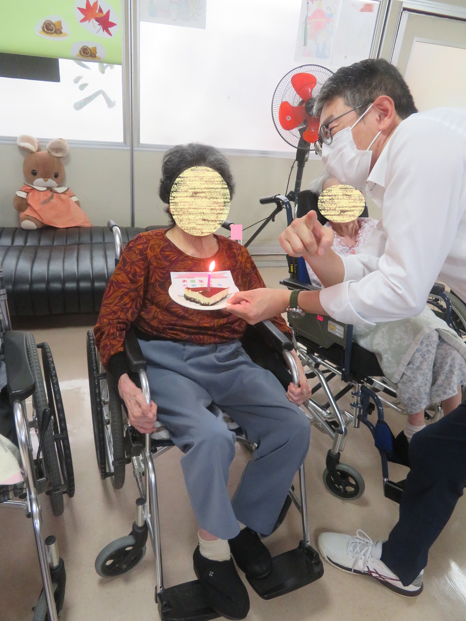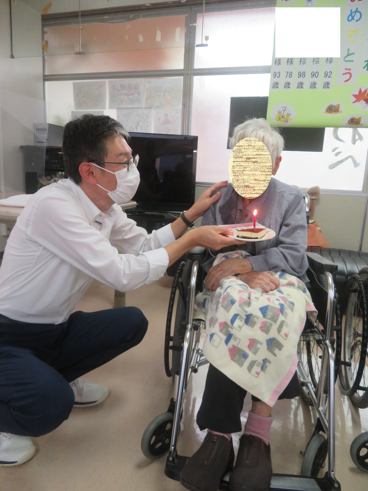 施設長より、お祝いの言葉を頂き、参加者の皆さまで誕生日の歌を歌って