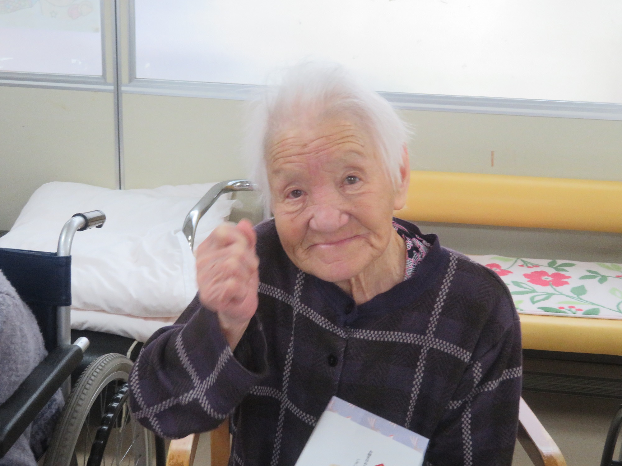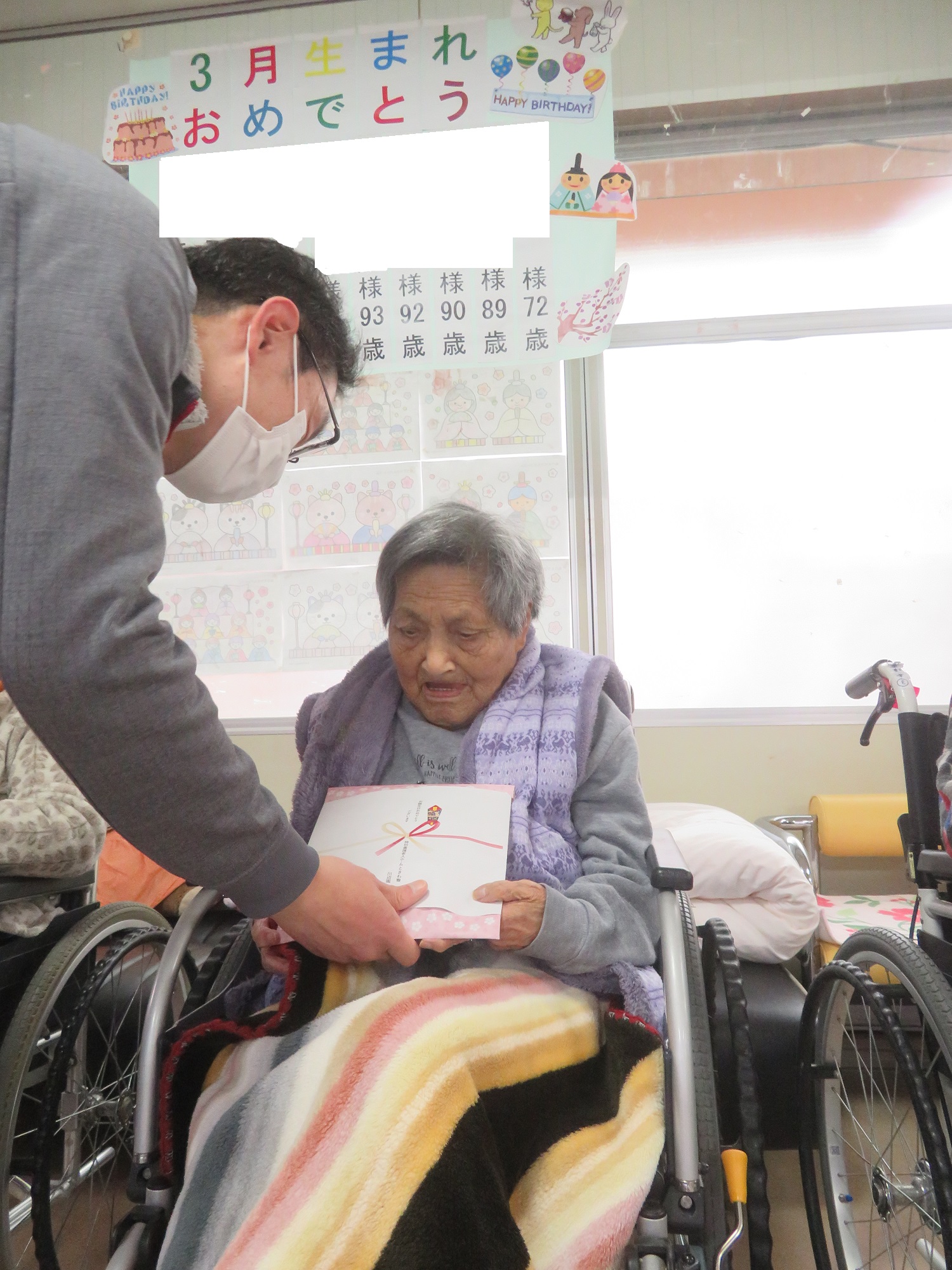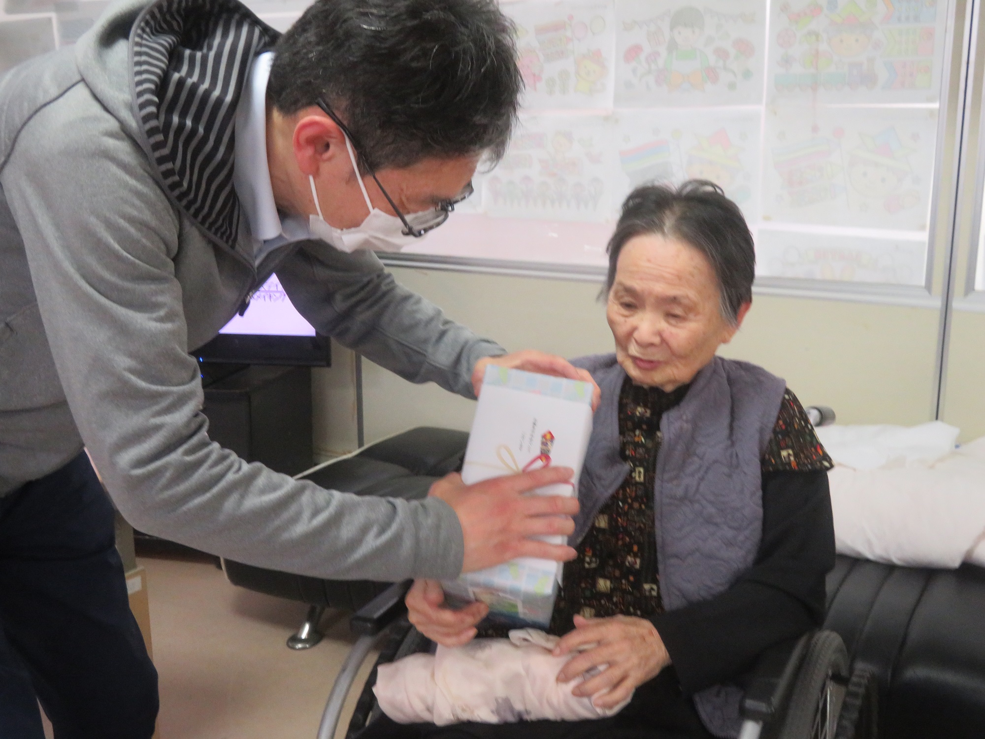 施設長から、誕生日プレゼントの贈呈