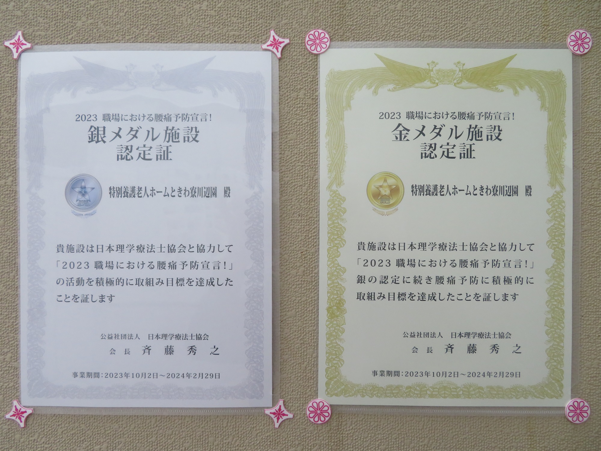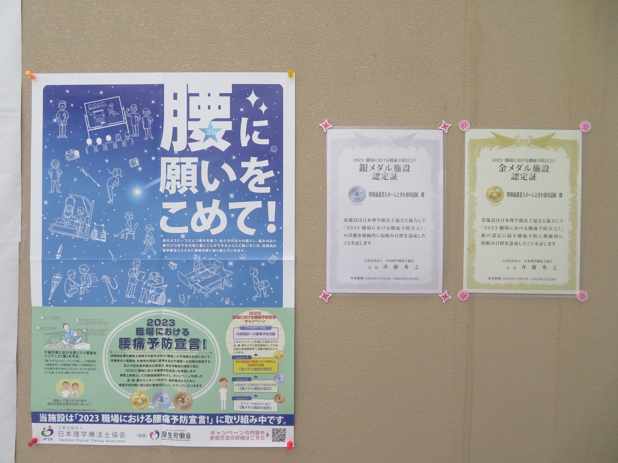 研修→アンケート→腰痛リスクの見積もりを実施し、金メダル施設として認定していただきました✨