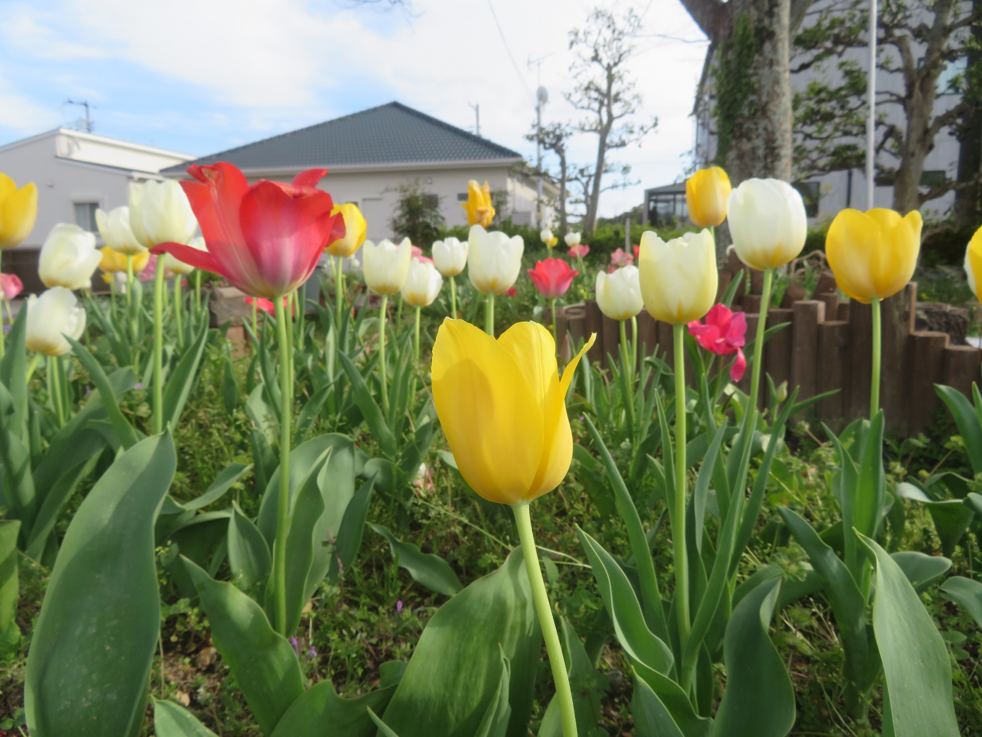 園庭のチューリップは色とりどりの花を咲かせ、