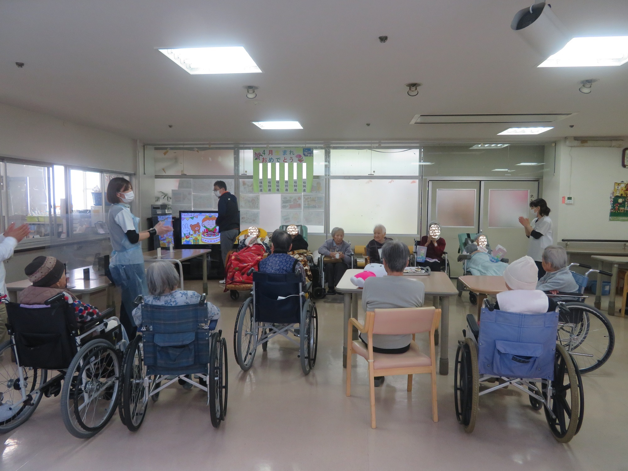 利用者のみなさまで、誕生日の歌を歌ってお祝いしました