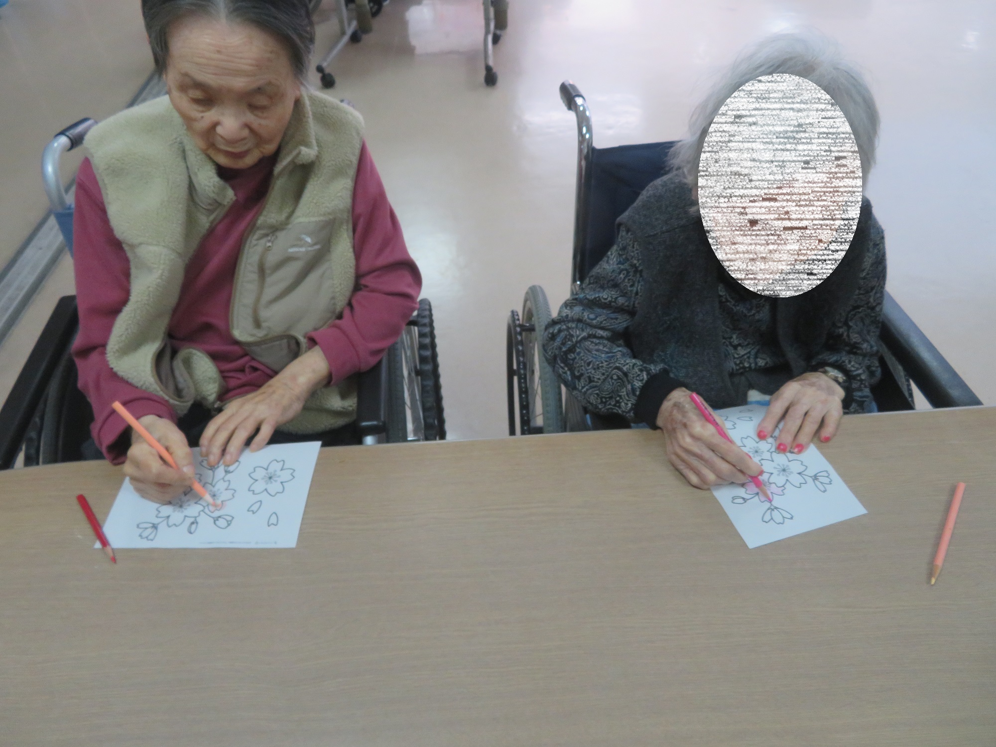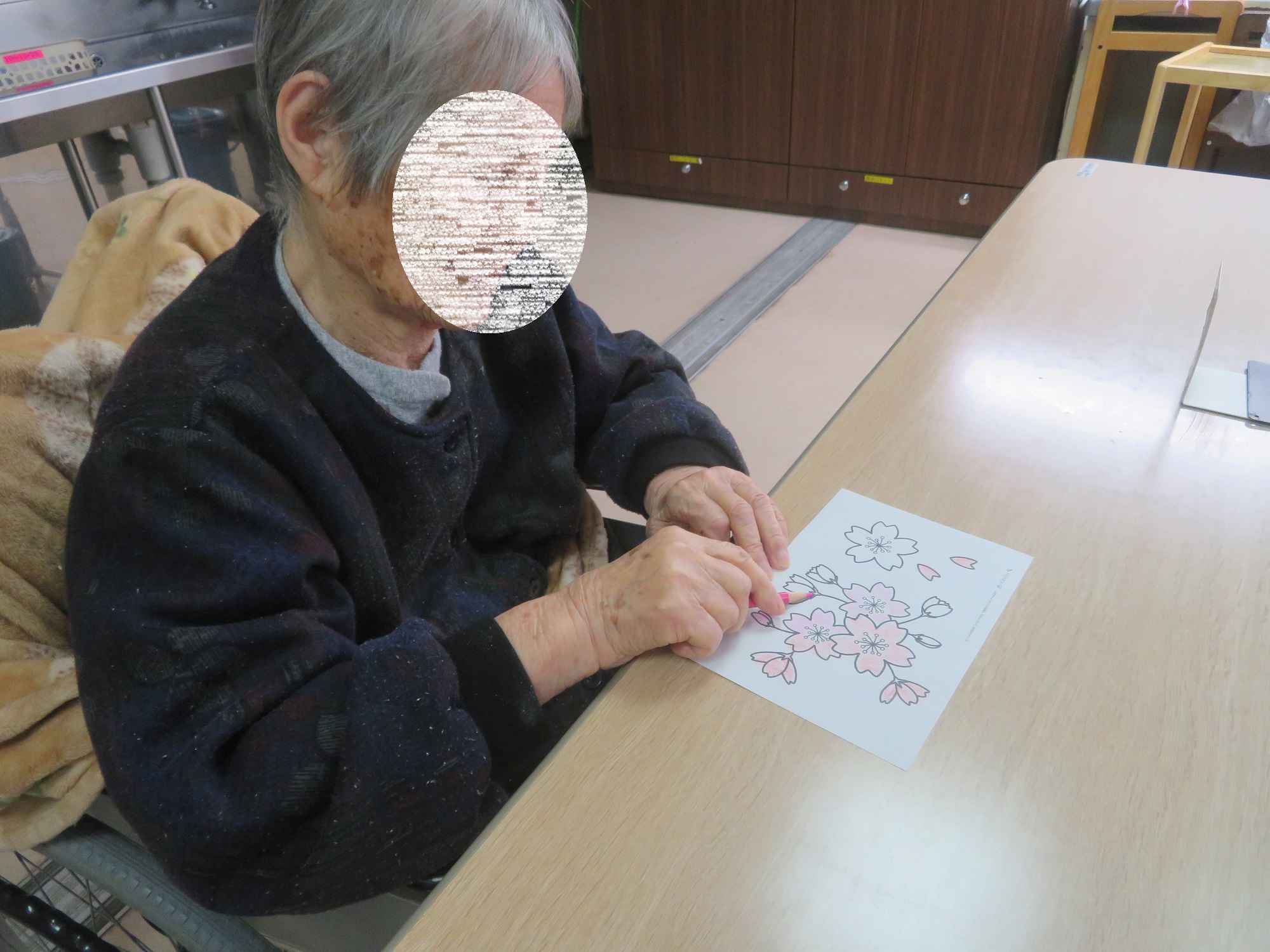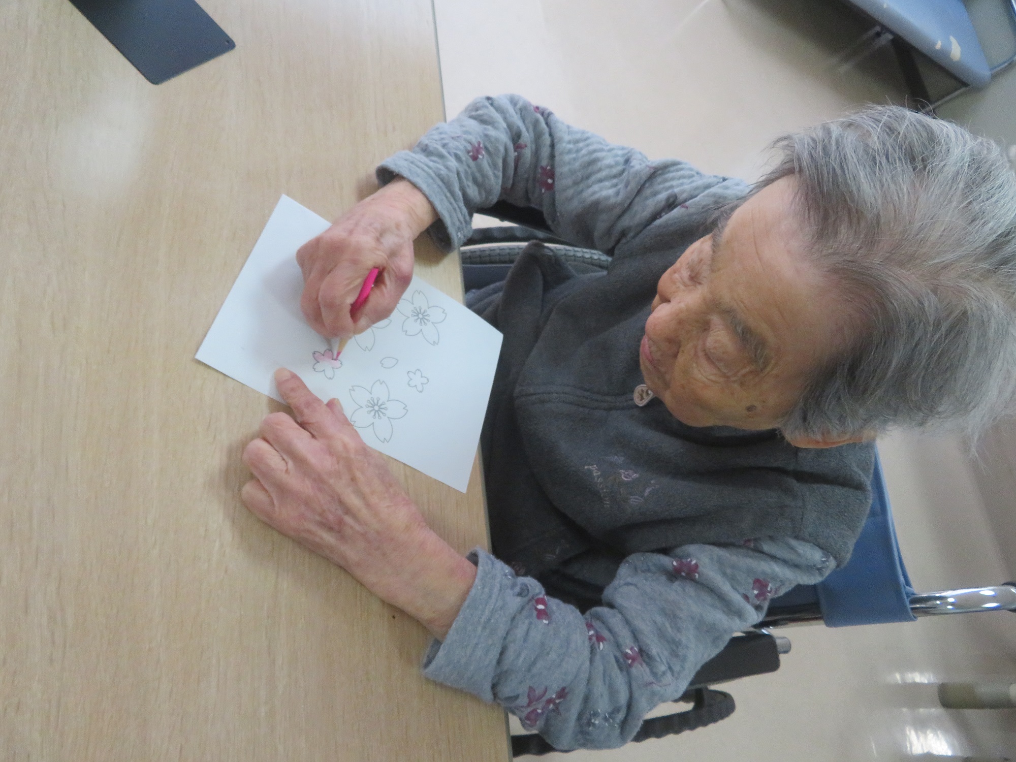 桜のイラストの塗り絵をしました