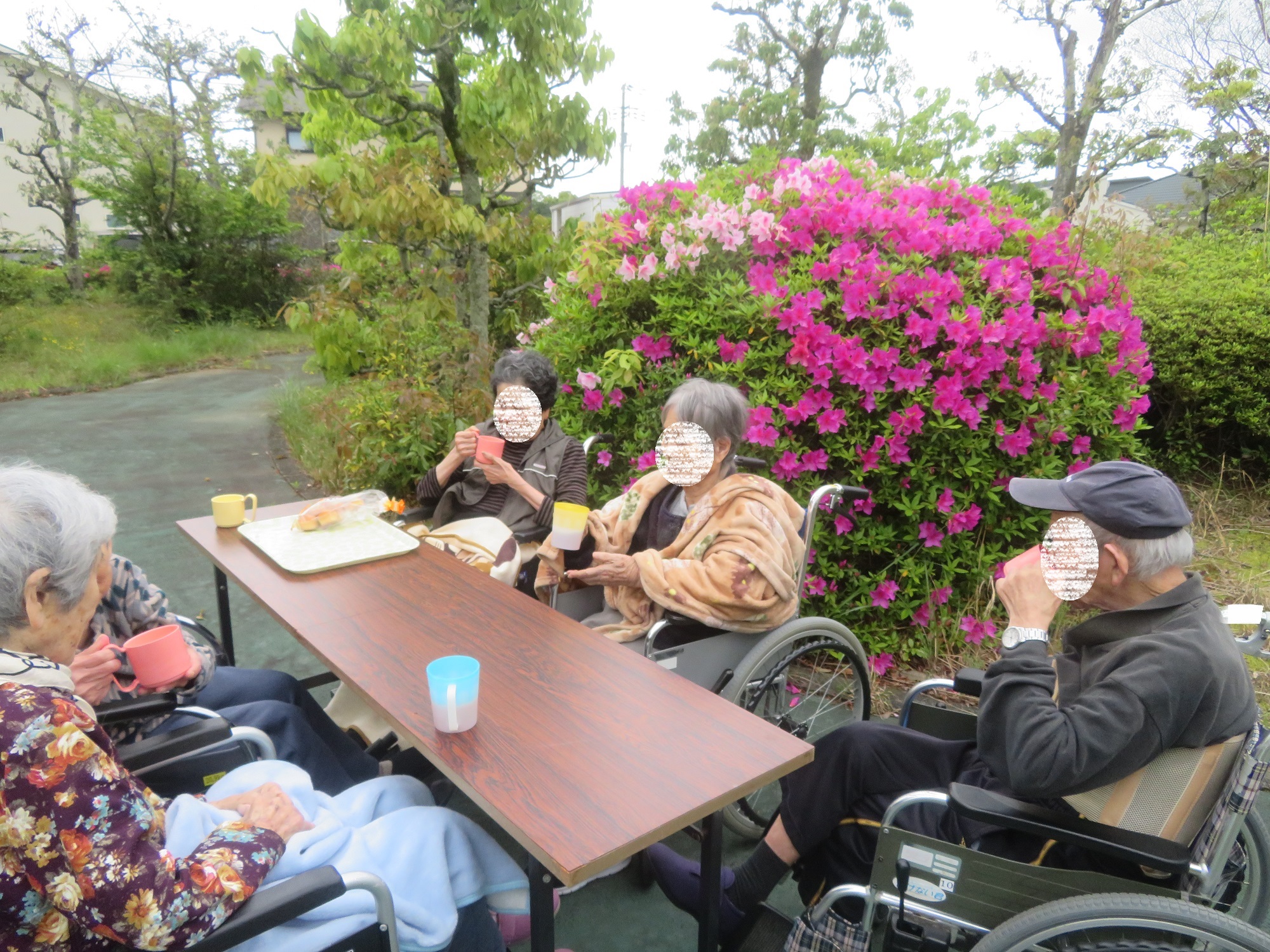 園庭のつつじを見ながら、茶話会を開催